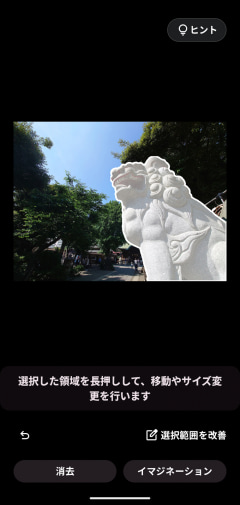 もちろん、有名な「消しゴムマジック」も健在で、観光地で撮った写真に写るたくさんの観光客をまとめて消す、といったこともできます。