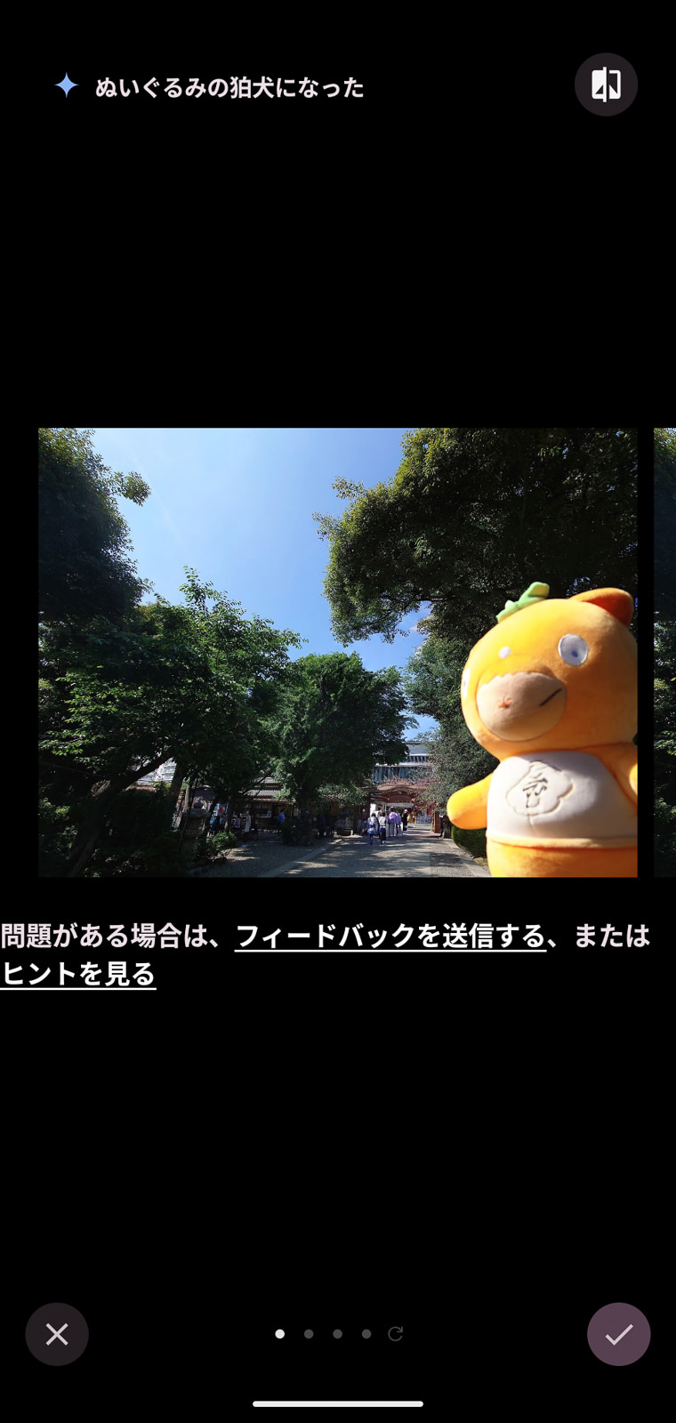 撮影した日付、場所だけでなく、食べた料理、訪れたスポット、メニューの文字、町の風景からでもテキストで検索できるのですが、こうした画像認識にもAIが活用されています。そしてさらに[フォト]アプリには複数の生成AI機能が搭載されています。