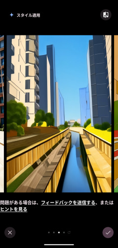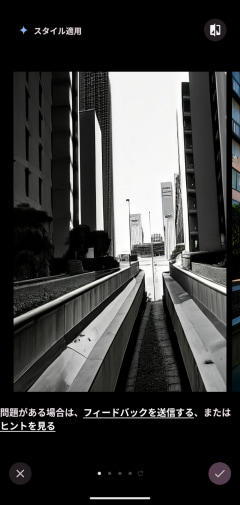 「スタイル適用」は、モノクロのような色調の変化だけでなく、イラスト化を含んだ独特の画像も生成してくれます。