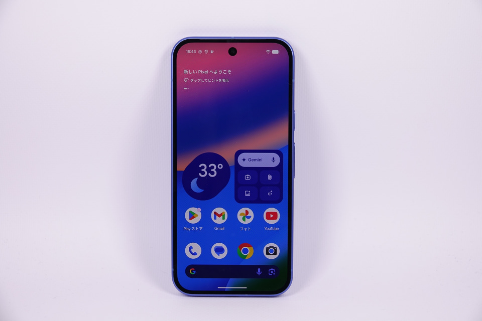 チップセットはGoogle Tensor G5・Titan M2 セキュリティプロセッサを採用し、メモリは12GB、ストレージは128GB/256GB。バッテリーは4970mAhで、30W以上のUSB-C PPS充電器を使用すると、約30分で最大55%充電可能。Qi2認証のGoogle Pixelsnap ワイヤレス充電に対応し、最大15Wの給電ができる。