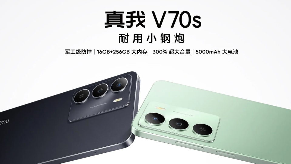 同時に発表されたrealmeの「realme V70」と全く同じモデルとなる「realme V70s」は異なる販路で販売される。なおメモリ構成は2パターンと少なくなっている。