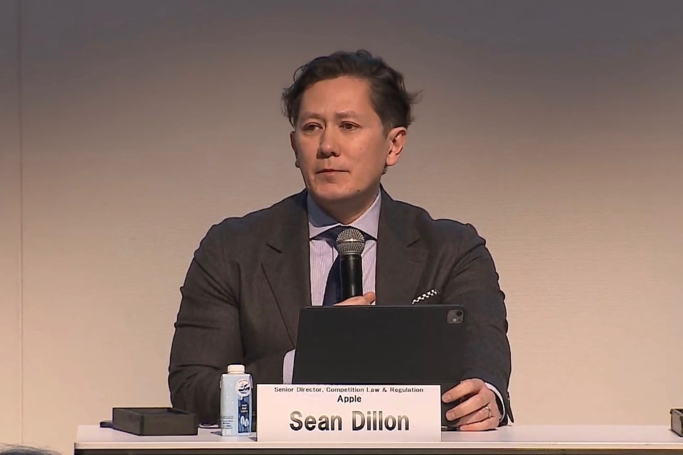 特に注目なのがアップルで同社の競争法・規制統括シニアディレクターのショーン・ディロン氏がパネルディスカッションに登壇していた。