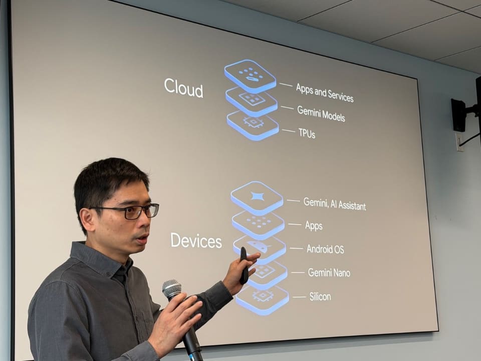 エリック・カイ氏は「グーグルはオンデバイスAIとクラウドAIを動的に使い分ける高度なアルゴリズムを研究、開発している」と語る。