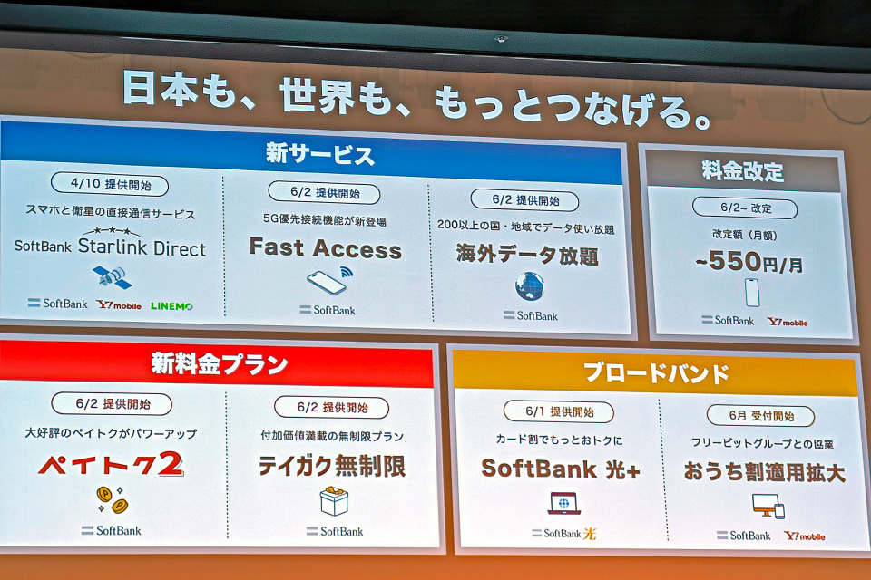 ソフトバンクは4月10日、新料金・サービス発表会を開催。「ペイトク2」「テイガク無制限」「ミニフィット2」などを発表した。