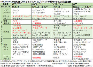 ポイントサービスの使い勝手を左右する、ポイント加盟店の状況も変化している。KDDIはほぼ全てのMastercard加盟店で「au WALLET プリペイドカード」が利用できるため、カード利用時の付与ポイントが通常より増量される「ポイントアップ店」のみ記載している。