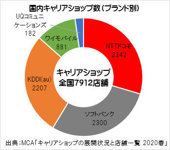MCAは、2月から3月にかけて、国内通信キャリア各社の「キャリアショップ」に関する調査を実施し、その結果を調査資料「キャリアショップの展開状況と店舗一覧 2020春」として取りまとめた。前回に引き続き、同資料からキャリアショップの状況を報告したい。