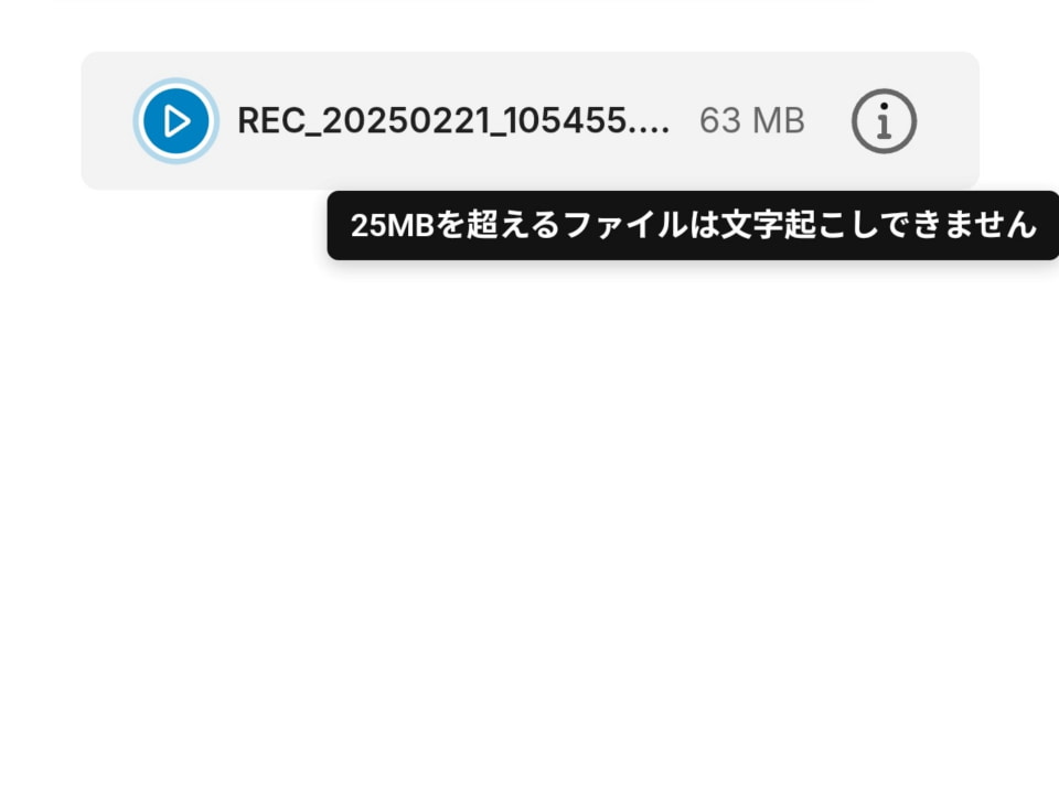 ただし、万能というわけではない。Evernoteでは25MBを超えるファイルの文字起こしに対応していないのだ。