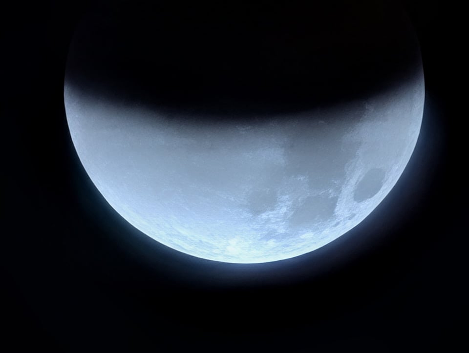 手持ちといっても、脇はグッと締めて仁王立ち。まずは地球の影が徐々に月を覆っていく場面では、普段の満ち欠けの状況に近い印象で撮影できました。以前と違うな、と感じたのは、明暗の調整がかなり的確になったこと。何も調整がない状態だと、Pixelカメラ上の月はひたすら白く輝いているのですが、ススッと素早く調整してくれて、模様をきちんと見せてくれます。