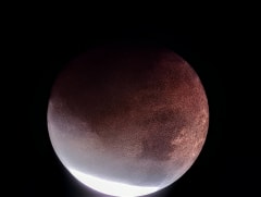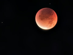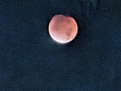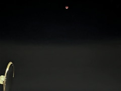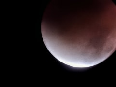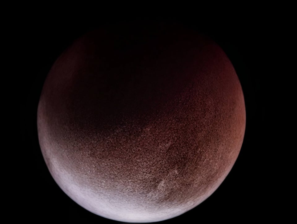 さて、時間は経ち、いよいよ皆既月食。ブラッディムーンと呼ばれる状態です。いざ「Pixel 10 Pro XL」で撮影しようとしてみるも……いやはや、ほんとにこれが難しい。先程までは明るさを自動調節してくれましたが、今回は明るさが足りないためか、なかなかうまく行きません。月の模様もおよそ捉えたとは言いづらく、赤い丸をなんとか追いかけてシャッターを切っていくと、それっぽい写真を撮ることはできました。