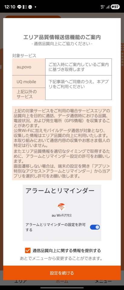おそらく「au Wi-Fiアクセス」アプリでセットアップをはじめるとき、初期画面からブラウザーに遷移する流れになっていて、動作環境のチェックに、何らかのミスがあると推察される。