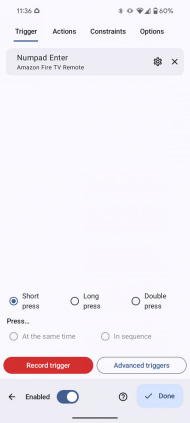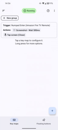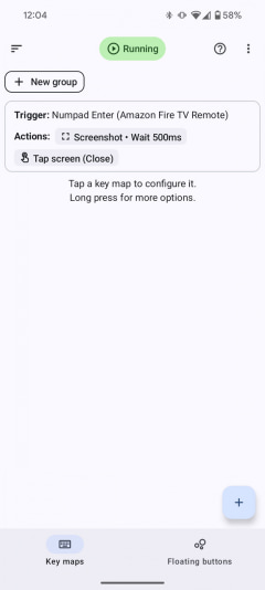 ペアリング後はキーボード的なものとして認識されるけれど、このままではスクリーンショットの撮影には使えない。そこで、前回と同様、「Key Mapper&Floating Buttons」というアプリを使う。とりあえず一番押しやすいリモコンの決定ボタンをトリガーに、スクショ機能が実行されるように設定した。