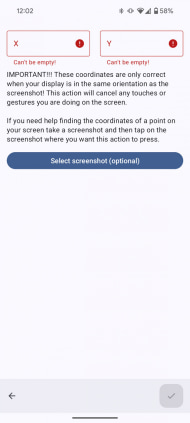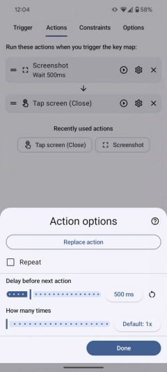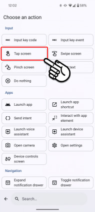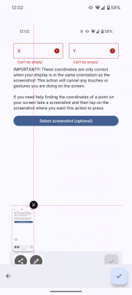 なので、これを自動で閉じるようにもしておきたい。Key Mapperのアクションで「Tap screen」を選び、いったんプレビューが表示されている状態のスクショを撮って、そのスクショを元にプレビューの×ボタン付近をタップすれば座標が設定される。