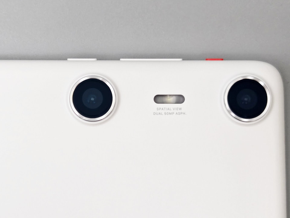カメラはそれぞれ5000万画素解像度で撮影でき、リアカメラ同士の距離は50mm離れている。これにより、カメラアプリで「空間写真」または「空間ビデオ」を選ぶと、1回シャッターボタンを押すだけで左右のカメラが同時に撮影して視差のある2枚の画像(もしくは動画)を得られる。