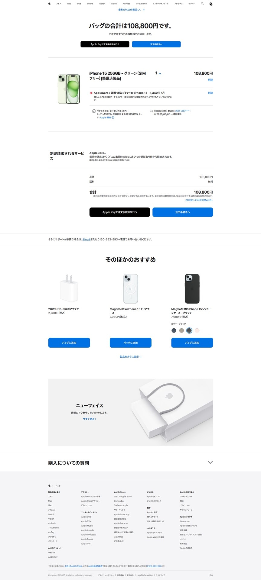 もう、迷う余地なし。ここで迷う手はございません。Apple Care+も付けて、即ポチ! です(あ、筆者はなくすか壊すかの確率が高いので保険込みが安心なのです)。