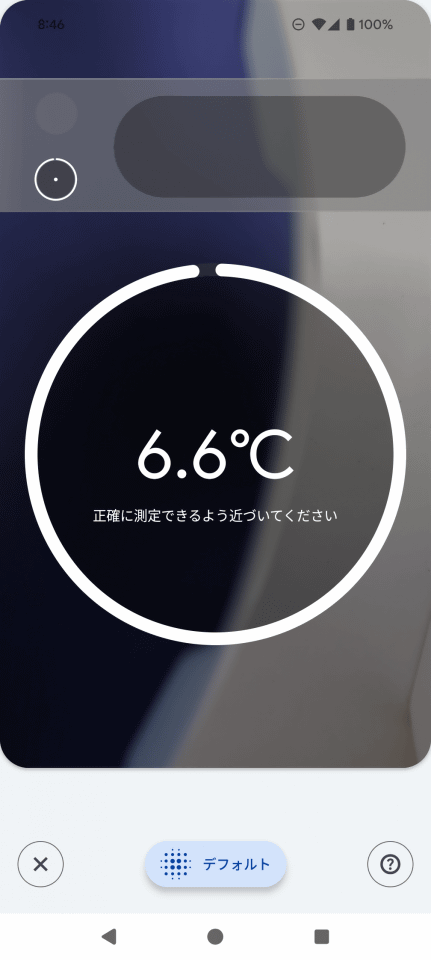 「Pixel 8 Pro」の温度計で計測してみると、プレート面の表面温度は6.6度でした。