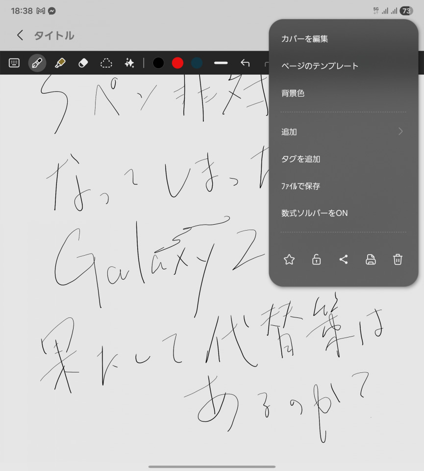 ペン先の太さと、手の反応の2つによって、使い勝手はSペンとは別物になると言っていいだろう。一方で、人差し指を使って手書きするよりははるかに書きやすいので、今のところは、このペンでしのいでいくことにした。ペンの価格はAmazonで500円だったため、Sペンに比べると金銭的な負担感は少ない。
