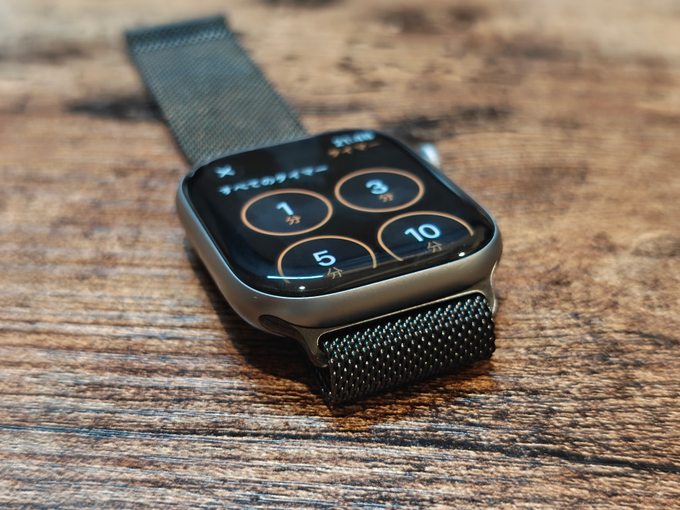購入後、「実はApple Watch SE 3でも良かったのでは」とも思いましたが、もともと45mmモデルを使っていたため、ケースサイズが小さくなるのには、やや抵抗感があります。