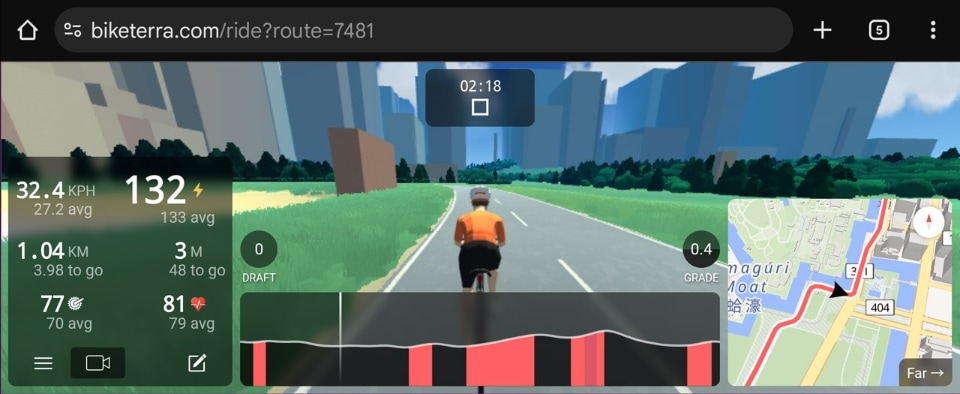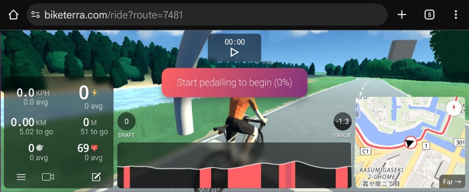 スマホブラウザでバーチャルサイクリングできる「Biketerra」を試してみた