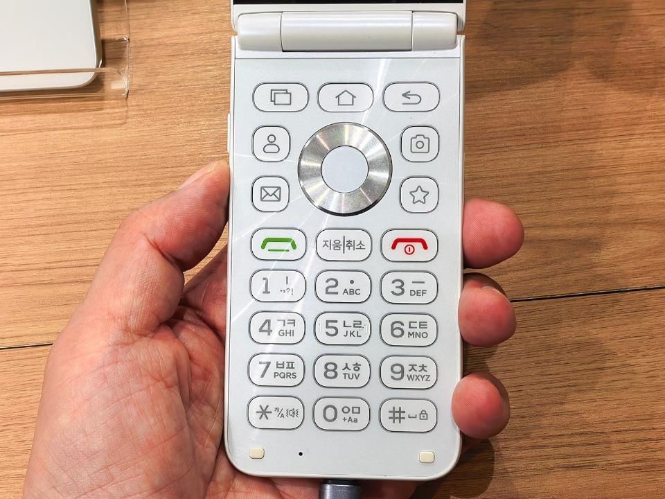 キーパッドはフィルムタイプながらクリック感があり、文字入力はしっかり行えます。カメラや電話帳などをキーボードから直接起動できるのも便利。ヒンジの動きもぐらつきは無く、全体の作りもしっかりしています。韓国の大手キャリアで販売されるモデルですし、品質は日本でも通じるレベルと感じます。