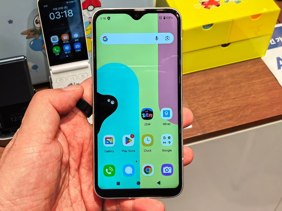 さて、STYLE FOLDER 2と一緒に展示されていた子供向けのスマートフォン「ZEM Phone Pokemon Edition 3」も簡単に紹介します。名前の通りポケモンとコラボした製品。なおZEM PhoneはSKテレコムが展開する子供向けのスマートデバイスブランドで、ALTが製品を提供しています。
