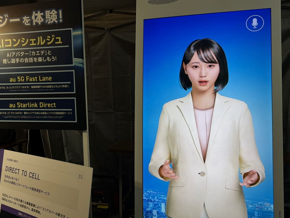 両日とも展示されていたのが、AIコンシェルジュと呼ばれるものです。ディスプレイにAIアバター「カエデ」が立ち、その日のサッカー日本代表戦に関するやりとりができるというものです。試合に合わせた選手の情報がインプットされており、所属チームやプレイの特徴を押さえながら、自然なやりとりが行えます。今回はサッカー日本代表にフォーカスしたやりとりを行うものでしたが、企業情報をインプットし、受付といった顧客対応に使用する未来がうかがえる体験でした。2日間とも、AIと会話すべく、多くの来場者が列をなしていたのが印象的です。
