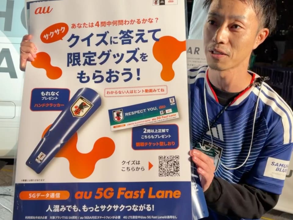 au 5G Fast Laneは、サッカーに関するクイズと絡めて紹介されています。その場でQRコードを読み取り、クイズに回答するのですが、普段からサッカーを見ている筆者でも、やや難しい問題が出題されました。