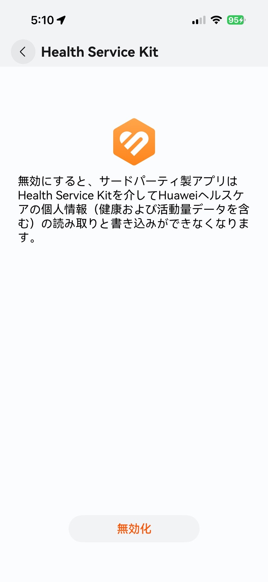 さらに、HUAWEIヘルスケアアプリで「自分」→「サードパーティサービス」へとアクセスし、「Health Service Kit」を有効にします。これで準備はOK。