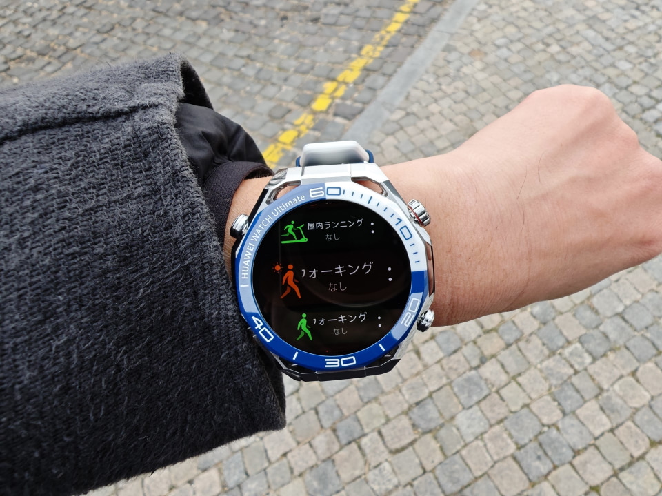 動画を撮影するときは、まずHUAWEI WATCH Ultimate 2でワークアウトをスタートさせます。今回は街中を散歩する動画を撮影するので、ワークアウトの種類はウォーキングを選びました。