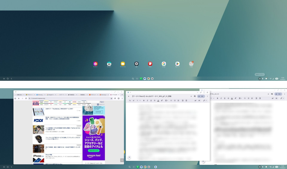 DeXモードでは、同じアプリでも複数のウィンドウを開くことができる。例えば、Googleドキュメントにまとめておいた情報を確認しながら、別のGoogleドキュメントファイルを開いて執筆するといったことが可能だ。