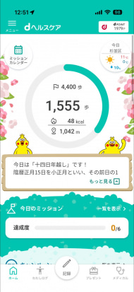 dヘルスケアアプリでは、パッとその日の歩数が確認できるのに加え、クーポンや健康に関するコラムがさっと読めるようになっています。
