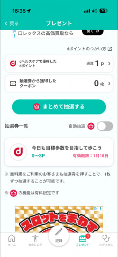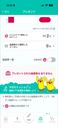 dヘルスケアでは、「健康ミッション」という形で健康に関する課題が与えられるので、これをこなしていくことでdポイントを獲得できます。獲得できるdポイントはミッションによってまちまちですが、汎用性の高いポイントをコツコツ貯めていけるのが魅力です。