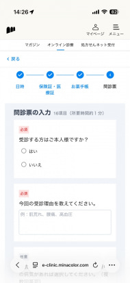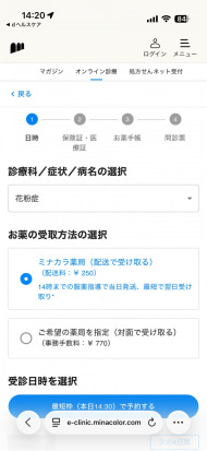 うっすらと花粉の気配を感じてきた筆者も、せっかくなのでオンライン診療を試してみました。事前に問診票を記入することになりますが、病院で手書きするよりもよほど楽です。待合室で待機する時間が発生しないので、無駄もなく、感染リスクも避けられるのがいいですね。