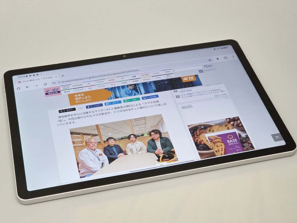 個人的に気に入ったのは、ディスプレイの美しさと大きさだ。実をいうとこのLenovo TAB8は、SoftBankから2年“レンタル”していた「Lenovo 14e Chromebook Gen 3」の返却時にスタッフから案内されて契約した端末だ。このChromebookもSIMカード入りで重宝していたのだが、「本当にTFT液晶?」と思うほどディスプレイの視認性が低く、老眼になりつつある目に厳しいと感じていた。
