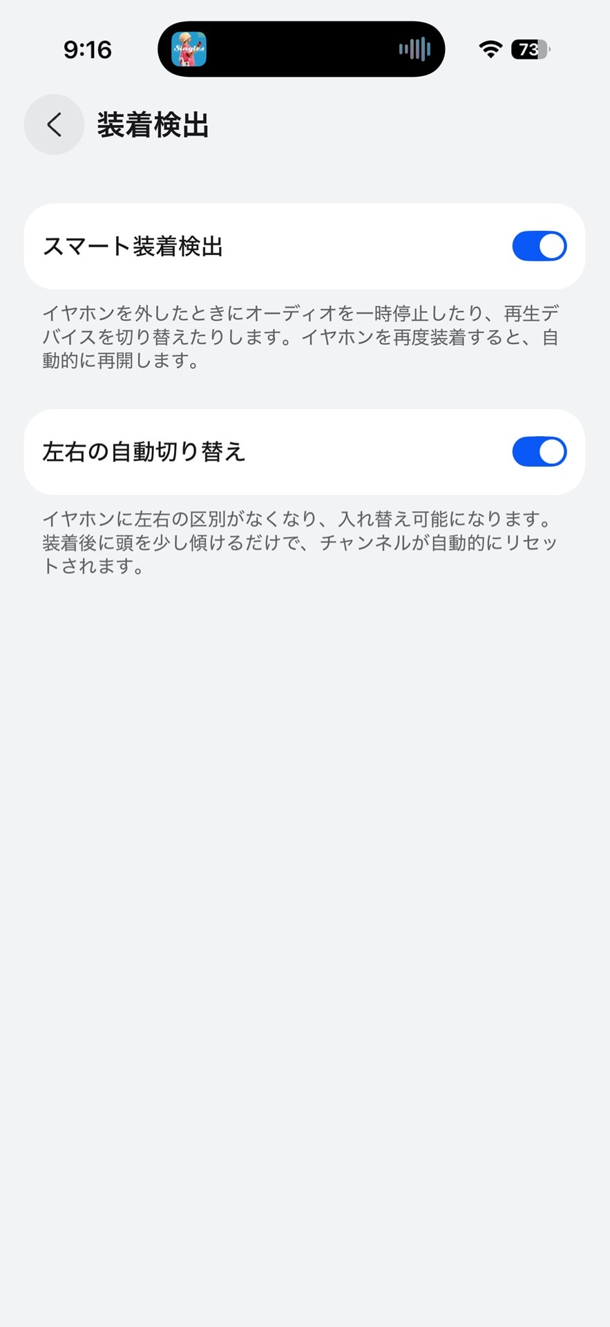 「探す」機能を使うと、片耳ずつイヤホンから音を鳴らせます。片方だけどこかに行ってしまった、というときに利用する機能です。結構するどく高い音が出るので、試すときは耳から外すことをお勧めします。