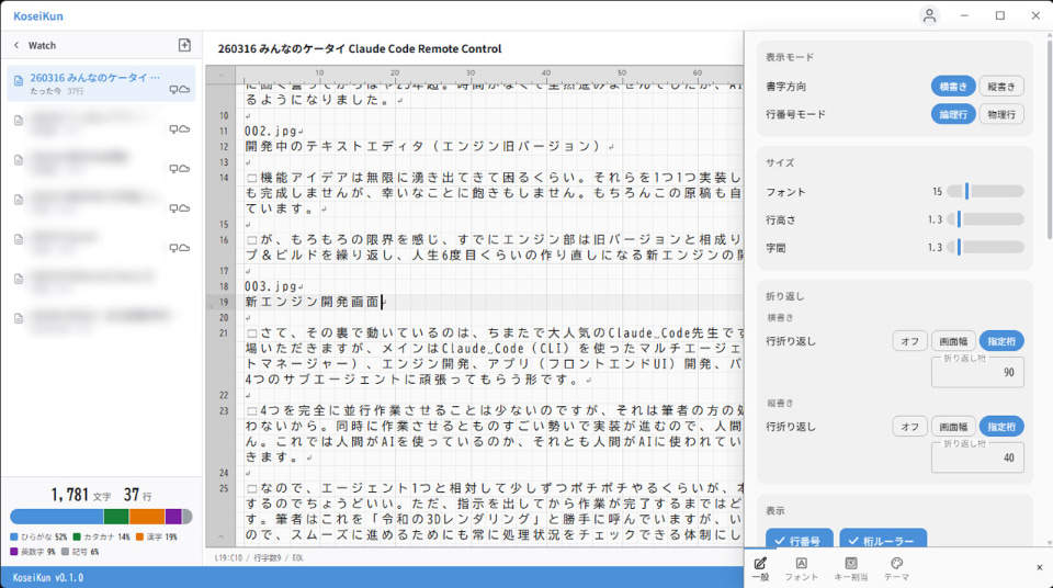 ライター稼業も30年と長くなってまいりました。その間に使ってきたいろいろなテキストエディタには「ここはこうだったらいいのに」という不満が少なからずあります。いつか自作してやるぞと心に固く誓ってからはや25年超。時間がなくて全然進みませんでしたが、AIのおかげでやっと進められるようになりました。