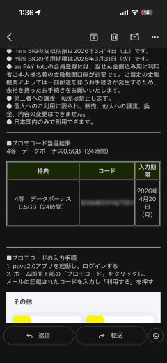 羽田空港の深夜便で到着し、そのまま自宅以外の場所に移動する手配をしていましたが、日本でレンタサイクルやカーシェアを借りるにもスマートフォンで通信が必要です。幸いSuicaのチャージは十分でしたが(オートチャージ設定もあり)、荷物が多かったこともあり、とりあえず回線維持も兼ねて回していたpovoガチャの景品を発掘してデータ通信を確保し、移動しました。