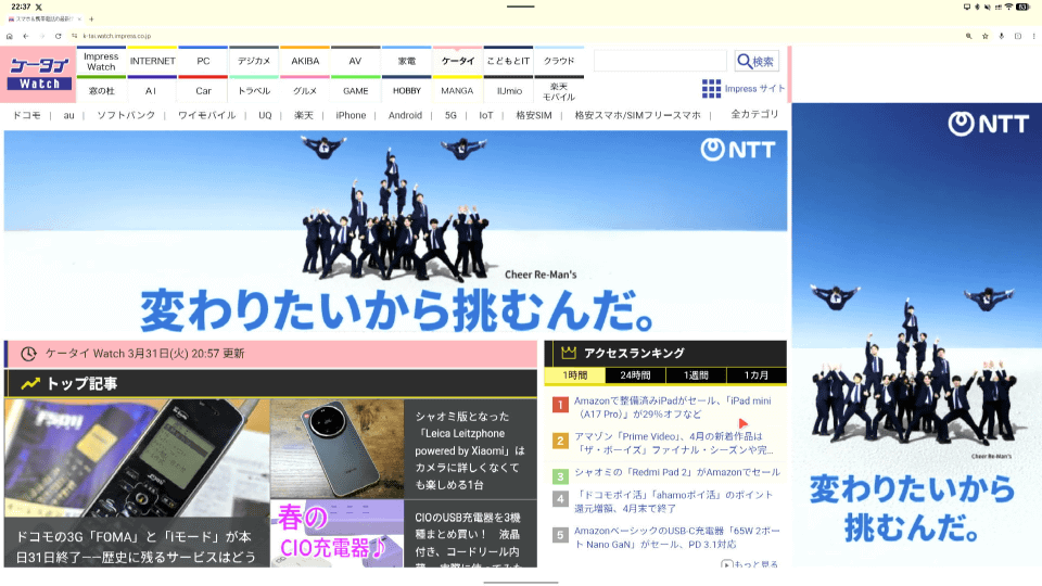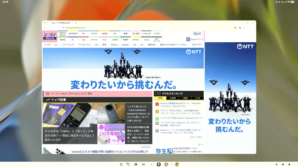 ただし、ChromebookはPC相当のフルブラウザにAndroidアプリという組み合わせに対し、デスクトップモードはAndroidアプリのブラウザのため、表示は基本的にスマートフォンモードで、パソコンのように使う際にはChromeの「PC版サイト」にチェックを入れる必要があります。