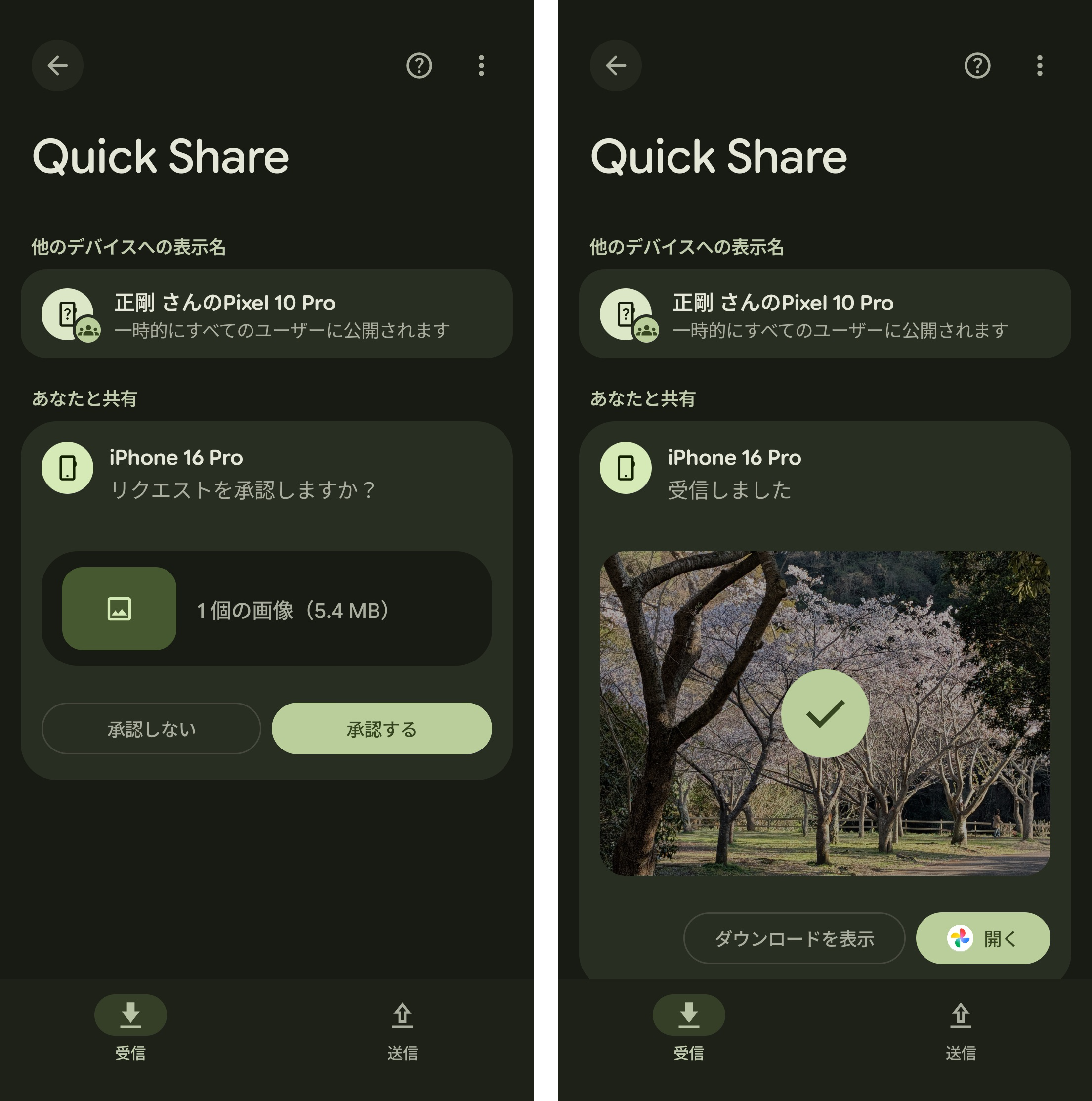 両者の連係は、グーグルとアップルが協力して実現したわけではありません。グーグルがAirDropの仕様を調べて、Quick Shareをその仕様に合わせることで実現したと認識しています。となると、Androidユーザーには便利で、Appleユーザーにはそうでもないのでは? と思いがちですが、iPhoneやMacからAndroidへの送信も迷わずスムーズに行えました。