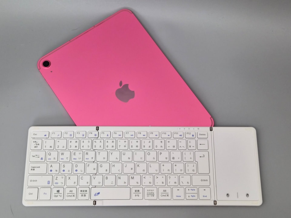 さて、このiPad(A16)の利用期間は2年間限定を予定している。そのためわざわざ専用のキーボード「Magic Keyboard Folio」を買うまでもない。とはいえせっかく手元にあるのだから文字入力を行いたい。ならば、手持ちの良さげなキーボードを試してみるほかない、とのことで接続することにした。