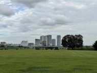 多摩川の河川敷から二子玉川にある楽天本社ビルを狙ってみた。各カメラにおける表現の違いがおさえられいい印象だ。