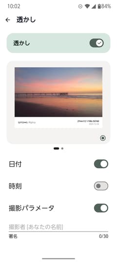 撮影に夢中になって、つい足場の悪い場所や水辺に近づくこともあるが、そんな時でも気をつかわずに済むのは、スナップシューターとして非常に心強い。撮影画面はごく一般的だ。最近流行りのウォーターマークの写し込みも可能になっている。
