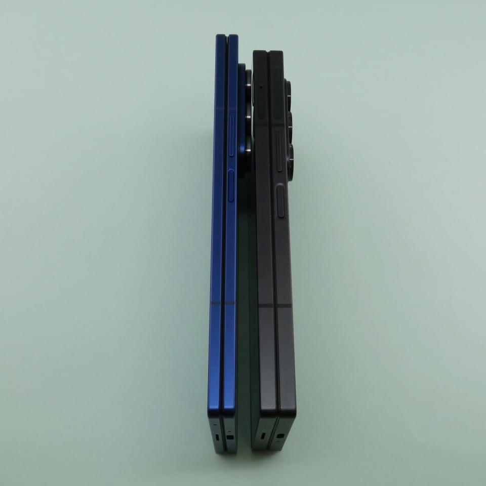 一般的なスレート形のスマートフォンとの比較では、今年2月発売の「Galaxy S25 Ultra」の8.2mm、「iPhone 16 Pro Max」の8.3mmに比べ、1mm以下の差しかない。端末を開いた状態も驚異的な4.2mmという仕上がりで、「Galaxy Tab S10 Ultra」の5.4mm、13インチiPad Pro(M4)の5.1mmよりも薄い。