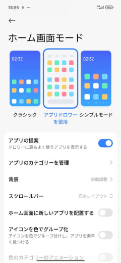 むしろ気になったのは、出荷時のディスプレイの設定だ。本連載でも数多くのシャオミ製端末を取り上げてきているが、ほとんどの製品では[設定]アプリの[ホーム画面]-[ホーム画面のレイアウト]で、アイコンが4列×7行表示の[4×7]が設定されている。