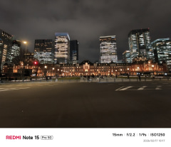 撮影モードは標準で「写真」「ビデオ」「ポートレート」「夜景」「ウルトラHD」「プロ」が設定されており、カメラ起動時に上方向にスワイプすると、「ドキュメント」「スローモーション」「タイムラプス」「パノラマ」を選ぶことができる。光学ズームは「写真」モードと「ビデオ」モードで0.6x/1x/2x/4x、「ポートレート」では1x/2xを設定できる。デジタルズームは最大30倍に対応するが、画質を考慮すれば、光学ズームのみの利用がベターだ。実際の撮影については、2億画素イメージセンサーを活かし、16in1ピクセルビニングを利用することで、夜景や暗いところでの撮影も非常に明るくクリアに撮影ができる。