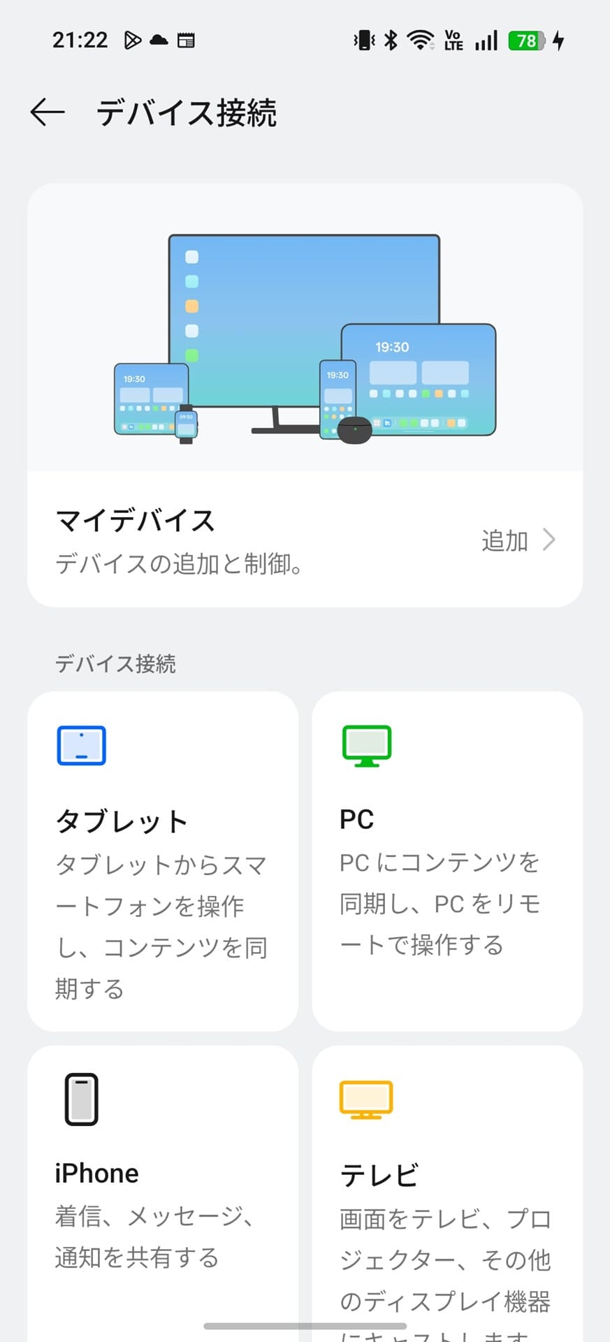 「Find X9」で利用できる独自の機能としては、OPPOデバイスやiOS端末との間でファイルや写真が共有できる「O+Connect」、WindowsやMacなどのパソコンのデスクトップ上に「Find X9」の画面をミラーリングして表示する「PC Connect」などが搭載されている。