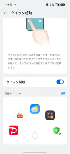 指紋センサーについては画面ロック解除時に長押しをして、表示されたショートカットからアプリを起動する機能も備える。他社製品でも同様の機能を備える機種があるが、「Find X9」はショートカットに表示するアプリをカスタマイズできるため、「au PAY」や「PayPay」といったコード決済アプリや店舗の会員アプリなどを登録し、すぐに起動できるようにしておくことも可能だ。
