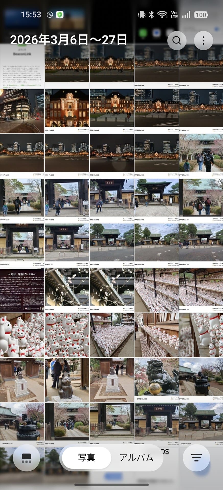 撮影した写真や動画は独自の[写真]アプリで閲覧できる。[写真]アプリ内からGoogleフォトへのバックアップの設定もできる。[写真]アプリで少し気になるのは、写真や動画、スクリーンショットが混在した状態で表示されることだろう。