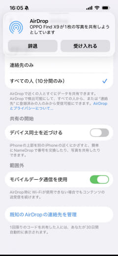 OPPOがこれまで提供してきた「O+Connect」では対象デバイスにアプリをインストールする必要があったが、QuickShareによるAirDropとの連携は、ColorOSを最新版に更新すれば、アプリなどを追加することなく利用できる。