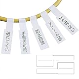 手軽に使えて書き込める面がある程度大きいものがいいかな、と思って買ってみたのが耐熱・防水の樹脂(TPE)製のケーブルタグだ。Jiangyuzhuoブランドの品で、Amazonではホワイト50枚入りが999円だった。1枚約20円。