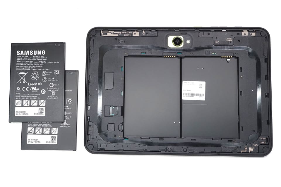 すご~い! バッテリー交換式で、フォールトトレラントバッテリー、みたいな? Galaxy Tab Active5 Proで業務遂行中「あっバッテリーがもうすぐ切れる!」ってときになっても、用意した予備バッテリーと残量僅少バッテリーをおもむろに交換すればOK。